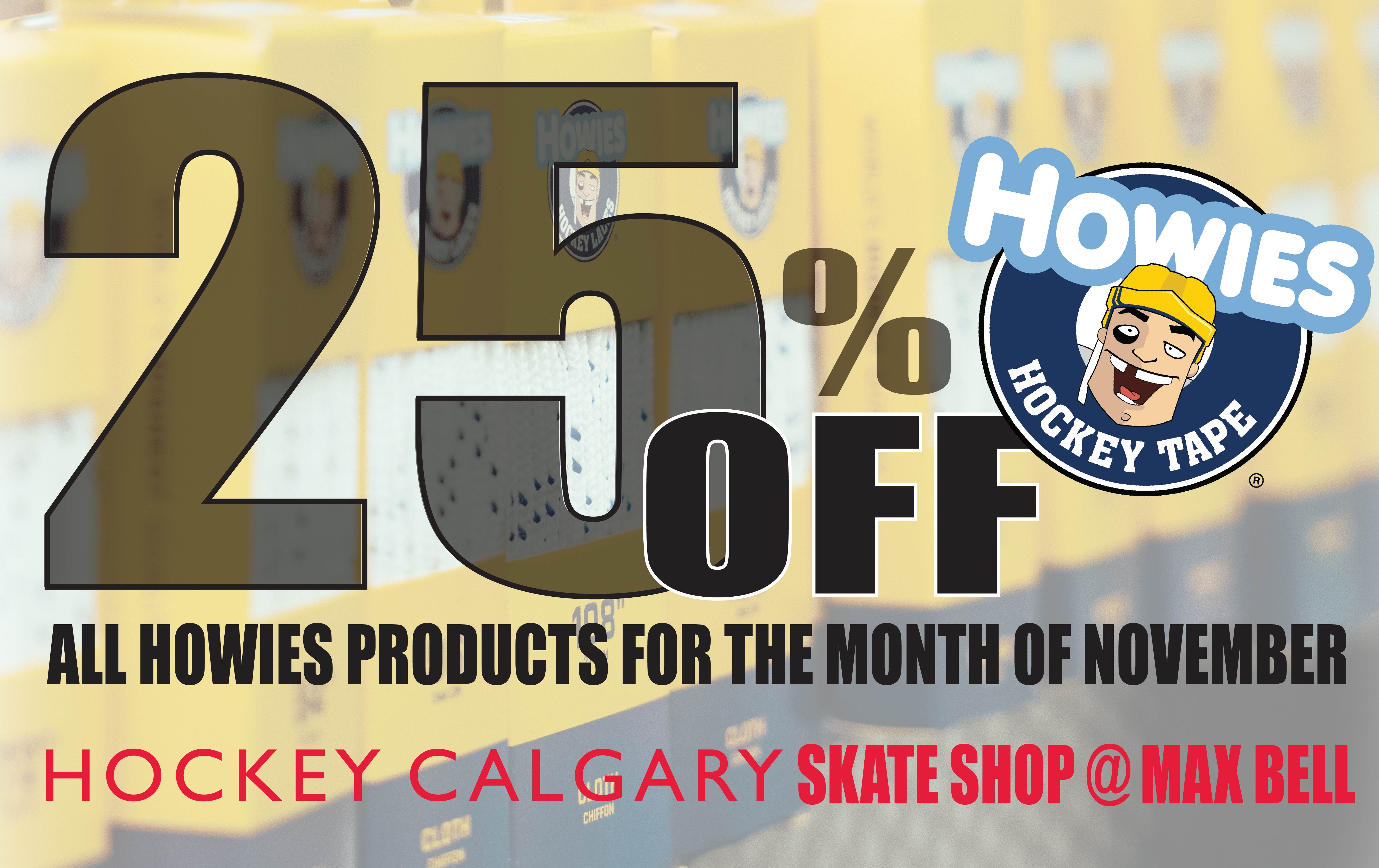 All Howies products are 25% off at the Hockey Calgary Skate Shop all November long. Stock up on tape, laces, and more, while supplies last!