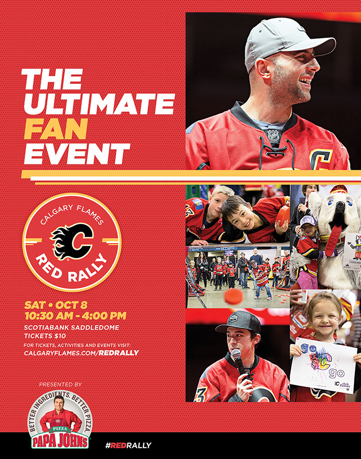 The Calgary Flames will host the Flames Red Rally presented by Papa John’s Pizza this weekend, Saturday, October 8 at the Scotiabank Saddledome featuring access to Calgary Flames players and members of the Flames alumni at this one-of-a-kind fan event.