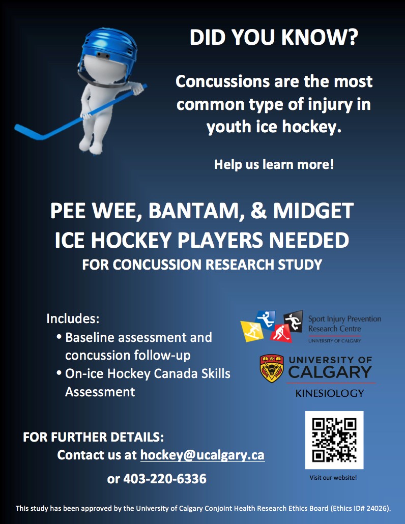 By joining this study your players have the opportunity to have concussion baseline testing completed and should they sustain a suspected concussion during the season, assessment and treatment from our study physicians at the University of Calgary’s Sport Medicine Centre. Typically, study participants are seen by our physicians within 72 hours of contacting us. Since we are a publically funded research centre, we are able to offer these services to you free of charge.