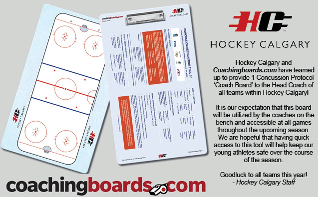 Hockey Calgary and Coachingboards.com have teamed up to provide 1 Concussion Protocol ‘Coach Board’ to the Head Coach of all teams within Hockey Calgary!