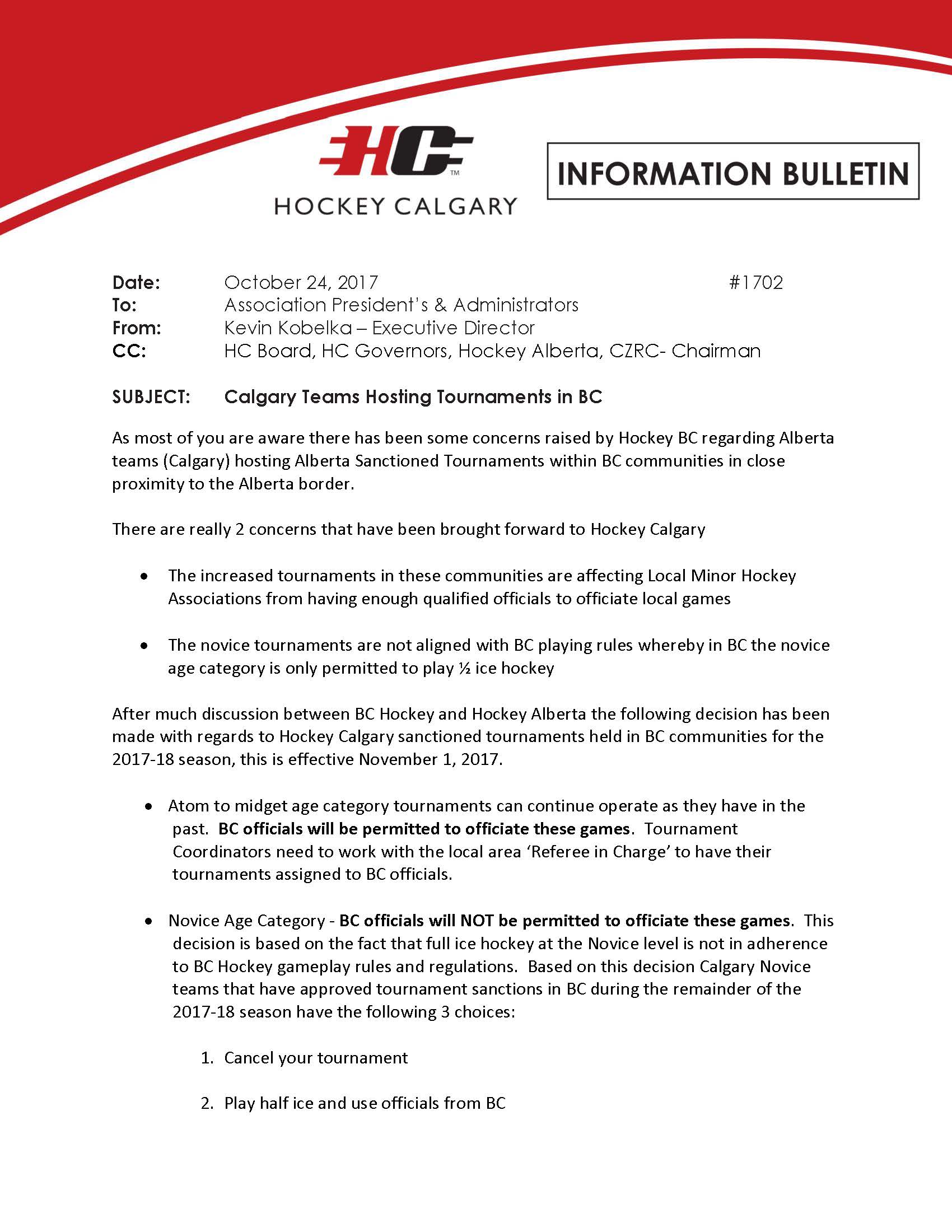 Information Bulletin - Alberta Teams hosting tournaments in BC