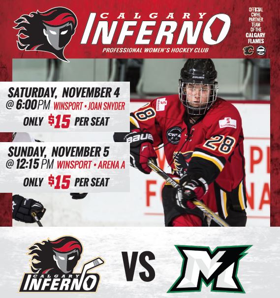Email Kristen Hagg, GM of the CWHL Inferno - khagg@thecwhl.com for information on ticket discounts available to Hockey Calgary members